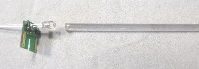 1.安価な田宮の3mm径のプラ棒を導光器として、室内灯に利用する、安価ながらも効果的な方式です。とくにNゲージ用としてお奨めめです。LED1本で点灯させるため、若干暗い印象がありますが、編成で使用するとかえって実感的だと思います。