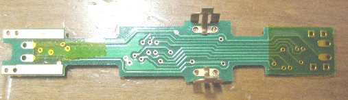 ダイキャストボディ側を絶縁してもかまいません。 ※この模型に関しては、構造上デコーダ裏面の受電パターンは無意味となっています。上面の狭いパターンのみでダイキャストの爪と接触して受電しています。ボデーをはめ込んだときに走行しない場合には、基板が上から押さえられて接触不良となっている可能性があります。裏面にテープをはって少しダイキャストボデーの爪と強めに接触するように調整してみてください。 |
