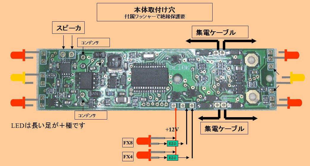 - 7FX → 8FX (ヘッドライト、テールライト以外の2FX(Fx4,Fx8)は、必ず抵抗器が必要です。)