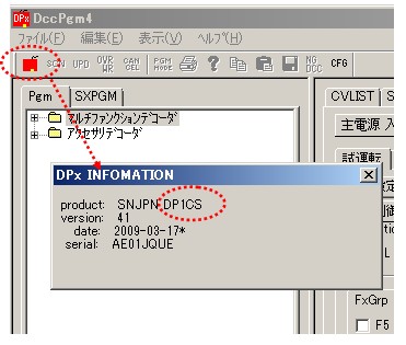 ソフトウエアは、DccPgm4 v.1.03 もしくは、DccPgm3 v.10.21以降。 |